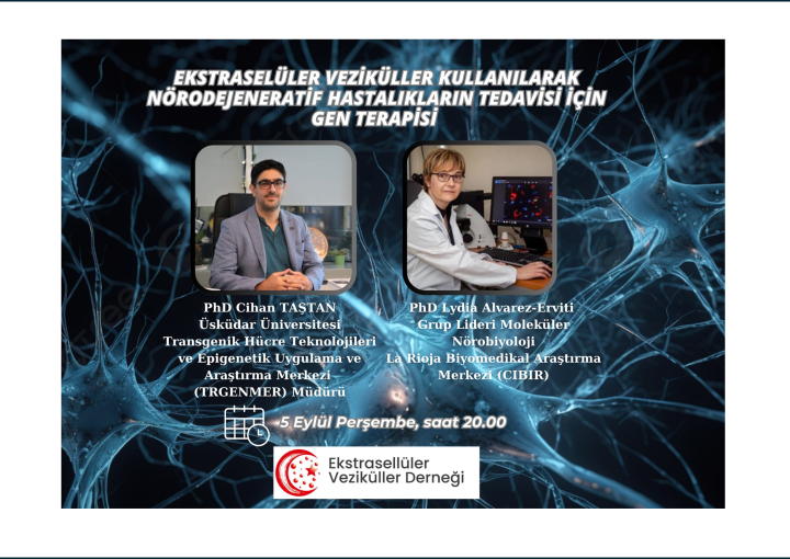 TRSEV 7 ay ago TRSEV Webinar: Ekstrasellüler Veziküller Kullanılarak Nörodejeneratif Hastalıkların Tedavisi için Gen Terapisi